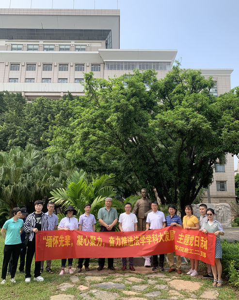 4月26日,beat365手机版官网入口教工二支部在我校育才广场顺利开展“缅怀先辈,凝心聚力,奋力推进法学学科大发展”主题党日活动,深切缅怀白鹏飞老校长和张志让教授,为推进法学学科发展凝心聚力。支部全体党员、入党积极分子代表共13人参与活动。