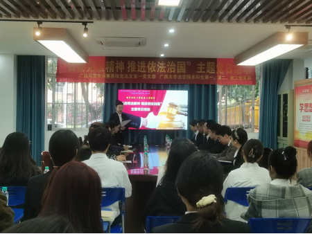 学法我先行,12月4日上午,beat365手机版官网入口师生代表受邀参加广西壮族自治区高级人民法院2023年“12.4”国家宪法日活动,参观了在自治区高院诉讼服务中心,科技法庭等,并集体观看以“全国模范法官”“全国民族团结进步模范个人”黄登林为原型创作的影片,切身感受法治广西建设进程。12月4日下午,广西同望律师事务所党总支一支部到学院为本科一、二、三支部党员上党课,解答学生求职就业疑问,共同探讨培养德法兼修的高素质法治人才的教育实践。