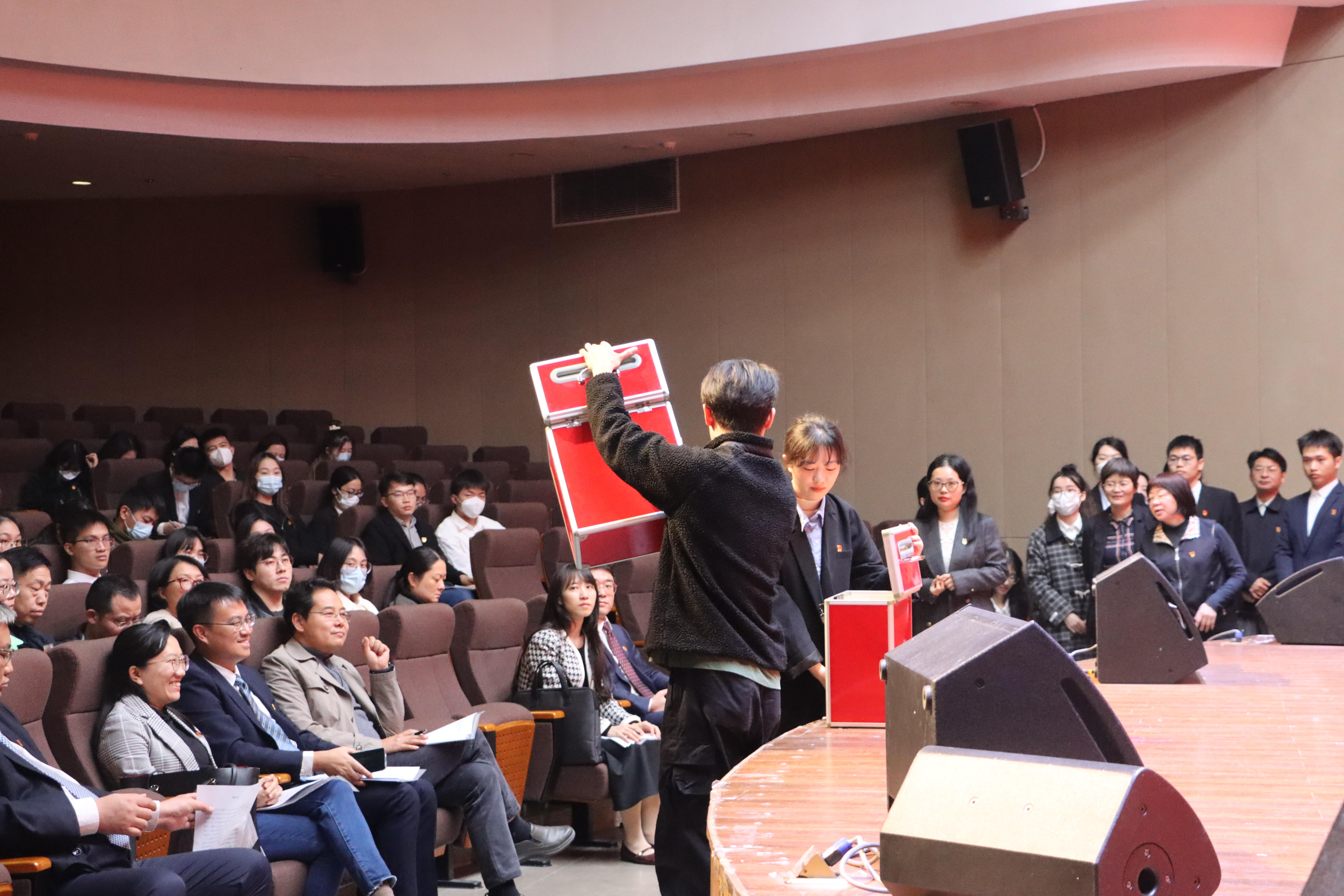 院党委副书记、院长许光耀宣读了《致全院党员倡议书》,号召大家以创新创造、奋勇争先的姿态和干劲,积极投身到广西大学“全面争创一流十大工程”行动,投身到德法兼修法治人才培养的工作中,为beat365手机版官网入口高质量发展共同奋斗。