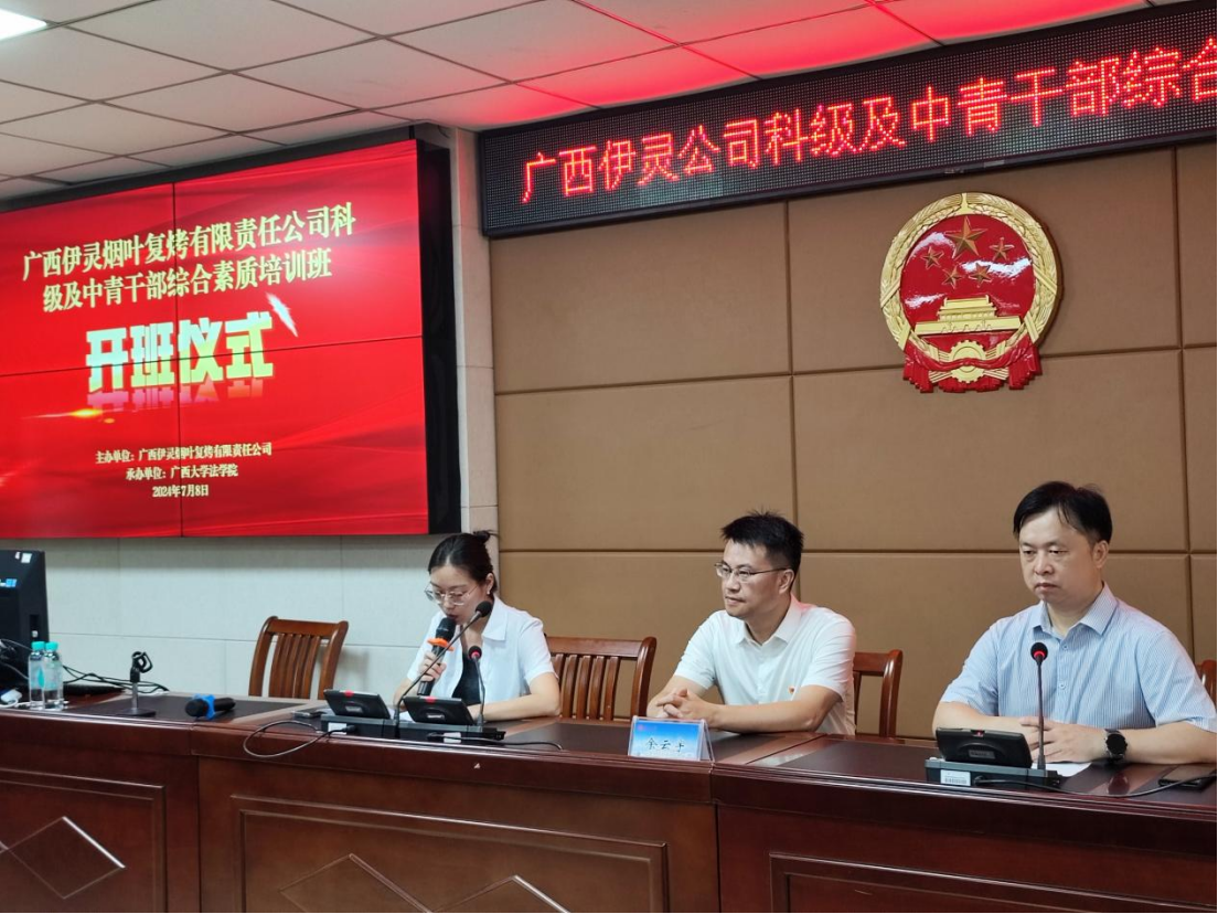 7月7日至12日,广西伊灵烟叶复烤有限责任公司科级及中青干部综合素质培训班在我院顺利举办。院领导余云宇、陈刚与伊灵公司人力资源处负责人张晓雪共同出席开班、结业仪式。