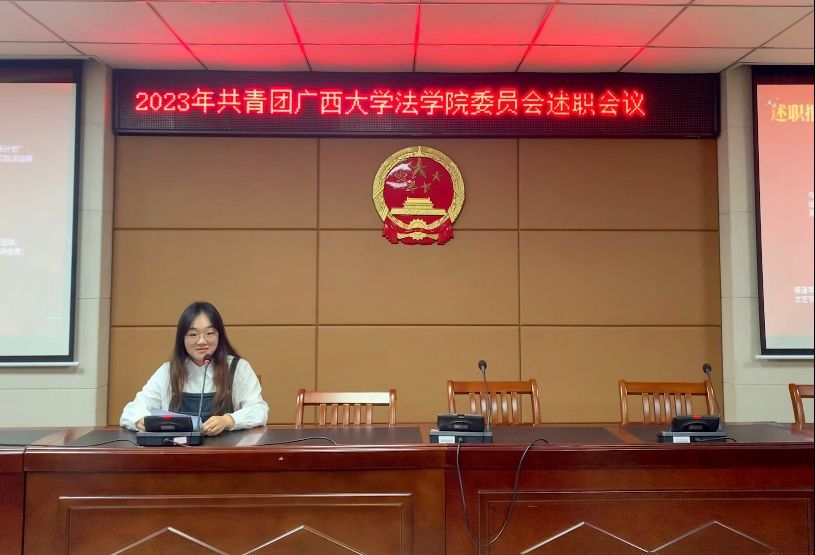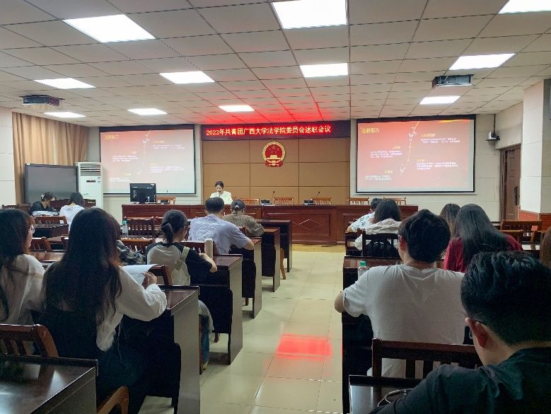 2023年12月15日下午十四时四十五分,共青团广西大学beat365手机版官网入口团委委员述职会议于beat365手机版官网入口201会议室正式召开,本次会议由卜枫俨同学主持,团委部门负责人及各支部团支书参与会议。
