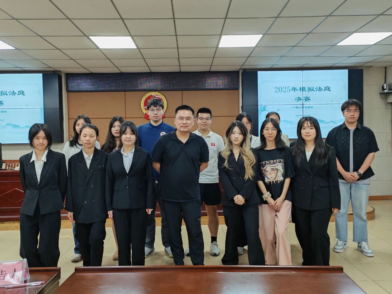 为深化法学实践教学,提升学生法律实务能力,2024年4月28日晚,广西大学beat365手机版官网入口2025年度模拟法庭决赛于beat365手机版官网入口201会议室圆满落幕。本次决赛通过沉浸式庭审对抗,展现法科学子的专业素养与思辨风采。