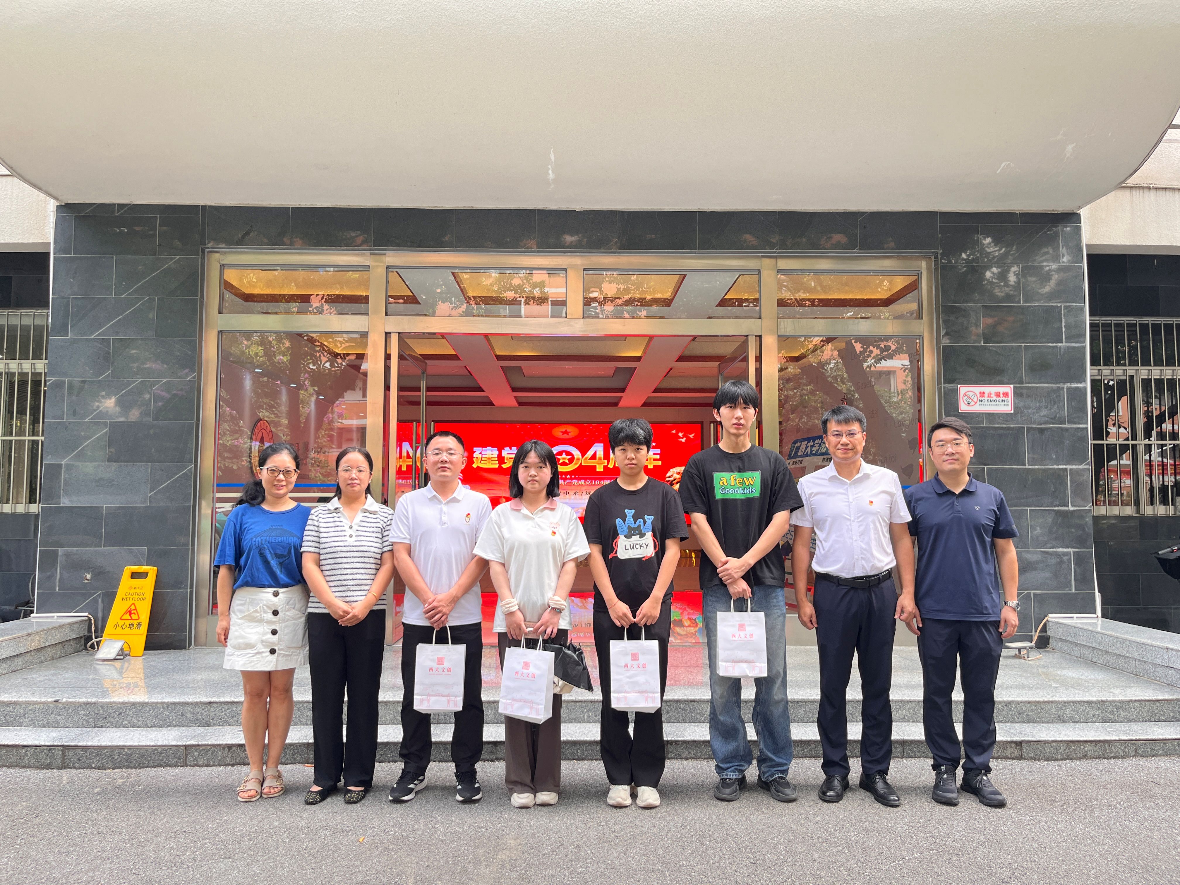 为庆祝中国共产党成立104周年,传承党的光荣传统和优良作风,进一步增强党组织的凝聚力和向心力,7月1日,beat365手机版官网入口党委书记余云宇、院党委副书记韦兴剑、副院长熊超、院团委书记申孟鑫、专职组织员蔡舒姝等,走访慰问师生党员,向他们送去党组织的关怀与温暖。