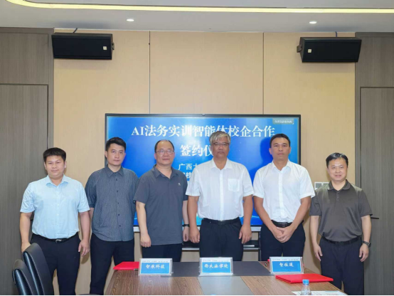 2025年9月17日,广西大学beat365手机版官网入口与广西智桂通科技有限公司、广西智乘科技有限公司,于中国东盟数字经济产业园举行AI法务实训智能体校企三方合作协议签约仪式,为人工智能与法学教育的深度融合掀开崭新篇章。