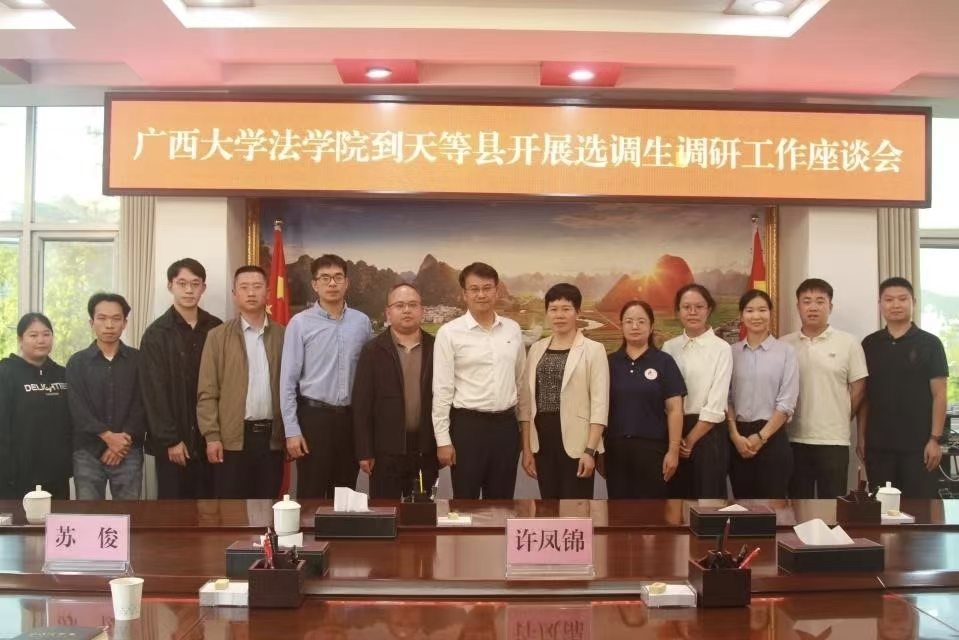 座谈会后,调研组前往大新县人民法院、天等县委国家安全委员会办公室,看望我院2006届法学本科毕业生黄世美、2013届法学本科毕业生黄海连,深入选调生工作岗位,实地了解选调生岗位工作内容、职业成长历程及生活状况,转达母校的关怀与问候,并邀请选调生校友回校分享基层法治实践经验,进一步夯实校地联动纽带。