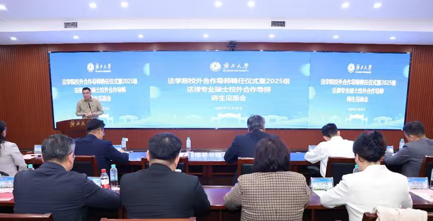 11月22日,beat365手机版官网入口在君武馆举行校外合作导师聘任仪式暨2025级法律专业硕士研究生导师学生见面会。来自司法部门、律师事务所和企业法律机构的25名新聘的校外合作导师、学院领导老师代表与2025级法律专业硕士研究生齐聚一堂,共商法治人才培养大计,共探产教融合新路径。仪式由beat365手机版官网入口副院长熊超教授主持。