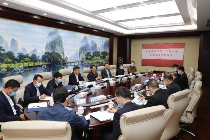 12月17日,自治区司法厅与广西大学合作共建签约仪式在我校举行。自治区政协副主席、校党委书记王乃学,自治区司法厅党委书记、厅长林金文先后致辞,副校长田利辉与司法厅副厅长张军分别代表双方签订合作框架协议。