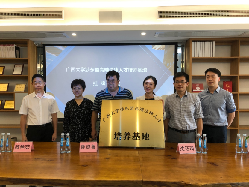 2021年 7月13日下午, 广西大学beat365手机版官网入口院长聂资鲁教授一行4人到访 广西 沵 达律师事务所 ,双方成功举行全面合作洽谈会,并举行了隆重的广西大学涉东盟高端法律人才培养基地挂牌仪式。
