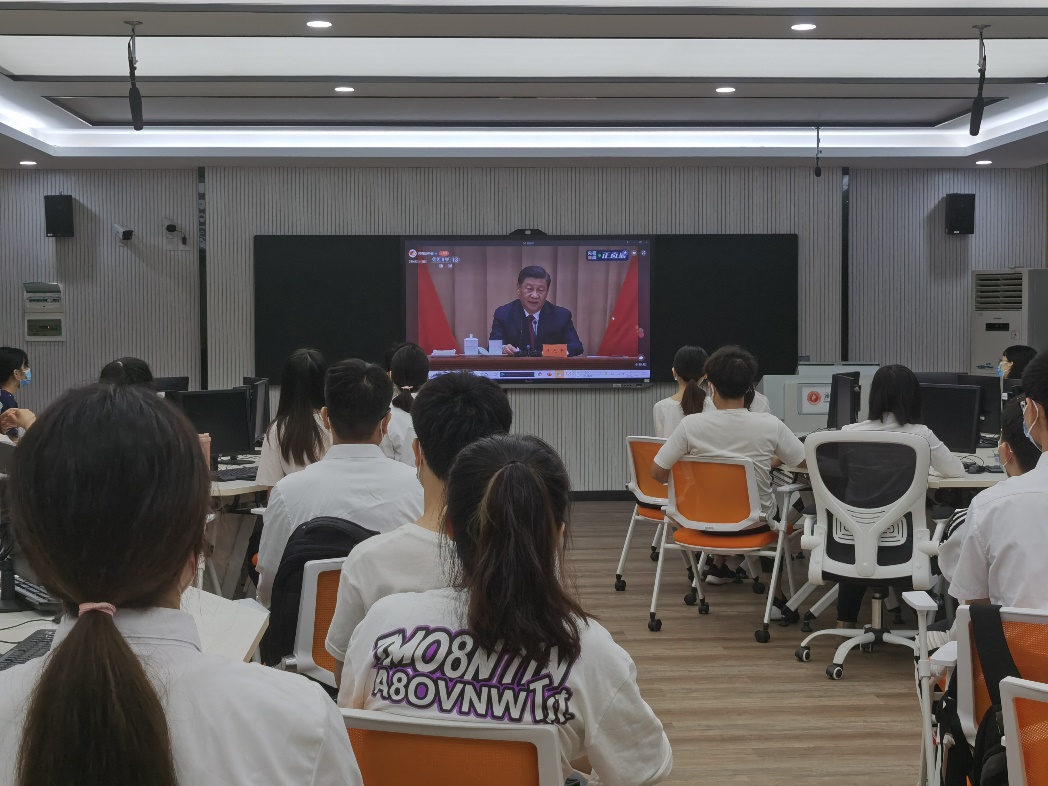 2022年5月10日上午10时,广西大学beat365手机版官网入口青年老师、本科2019级各团支部团员代表、学生会骨干在beat365手机版官网入口402教室观看庆祝中国共产主义青年团成立100周年大会直播,并认真学习习近平总书记重要讲话。