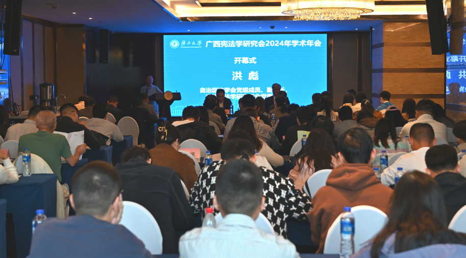 2024年11月23日,广西宪法学研究会2024年学术年会在南宁举行。本次年会由广西宪法学研究会主办,广西大学beat365手机版官网入口承办。广西宪法学研究会会长、广西大学教授蒋超主持开幕式。自治区法学会党组成员、副会长、自治区法学研究行业党委书记洪彪,广西大学beat365手机版官网入口院长许光耀教授参加会议并致辞。